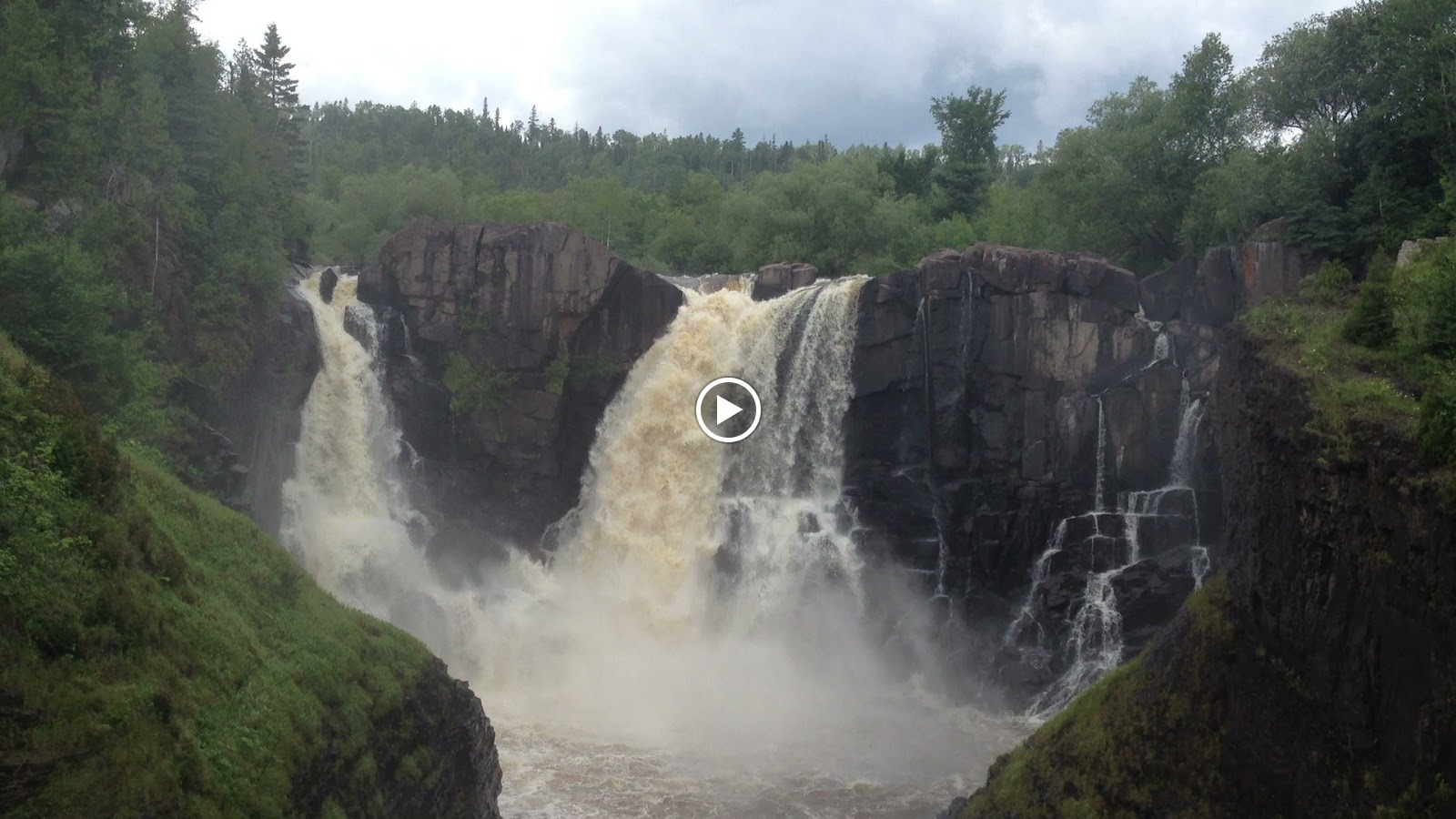 | The 120-foot High Falls at Grand Portage. Canada on the other side. A rainbow in the foreground. Water droplets everywhere in the air. Very cool. |